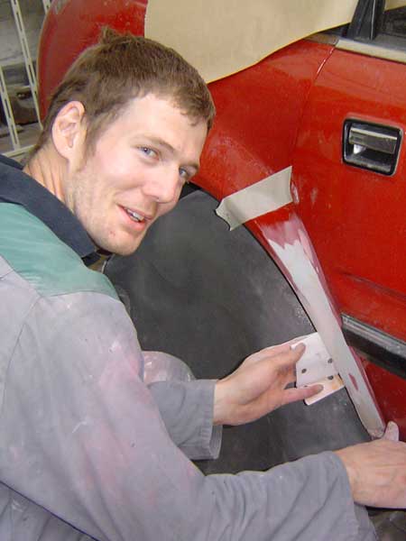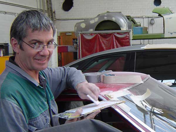 Just normal progress with some bits getting close to primer. Floor repair went OK but not tested the rest of the cills for corrosion yet. Unlikely, but might still spring a late surprise! Time to introduce Phil Smith, note the sports car, work in progress, in the background. Known him since he left school, and young Mark, his apprentice from about 5 years ago, now qualified plus he put himself thro uni in his spare time to graduate in something else! Click any Image to EnlargeThis car was my introduction to the Rover SD1 in '93 and I soon undertook its first restoration. I spent the intervening 16 years trying to learn everything I could about the car, particularly the electronic fuel injection system and its many other technicalities. Having written essays about the car for magazines and forums over the years I decided to bring them together along with all the new technical material now featured on this website here and the full story of that original restoration during my first full year of ownership here. A second major restoration took place in '04 with various minor blemish resto's in between times. The current work is due to paint finish failure on bonnet and roof plus the few scabs shown above taken in hand at the same time. Click here to go to previous page...............................................................Click here for next page |