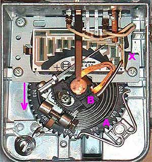 • This sets the correct start point for the potentiometer and the right position for operating the fuel pump contacts activated by the wire projecting from “B” to “X”